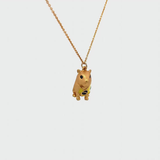 Collar capibara Brasil, también conocido como chigüiro del Amazonas, con baño en oro de 24K, acabado mate.