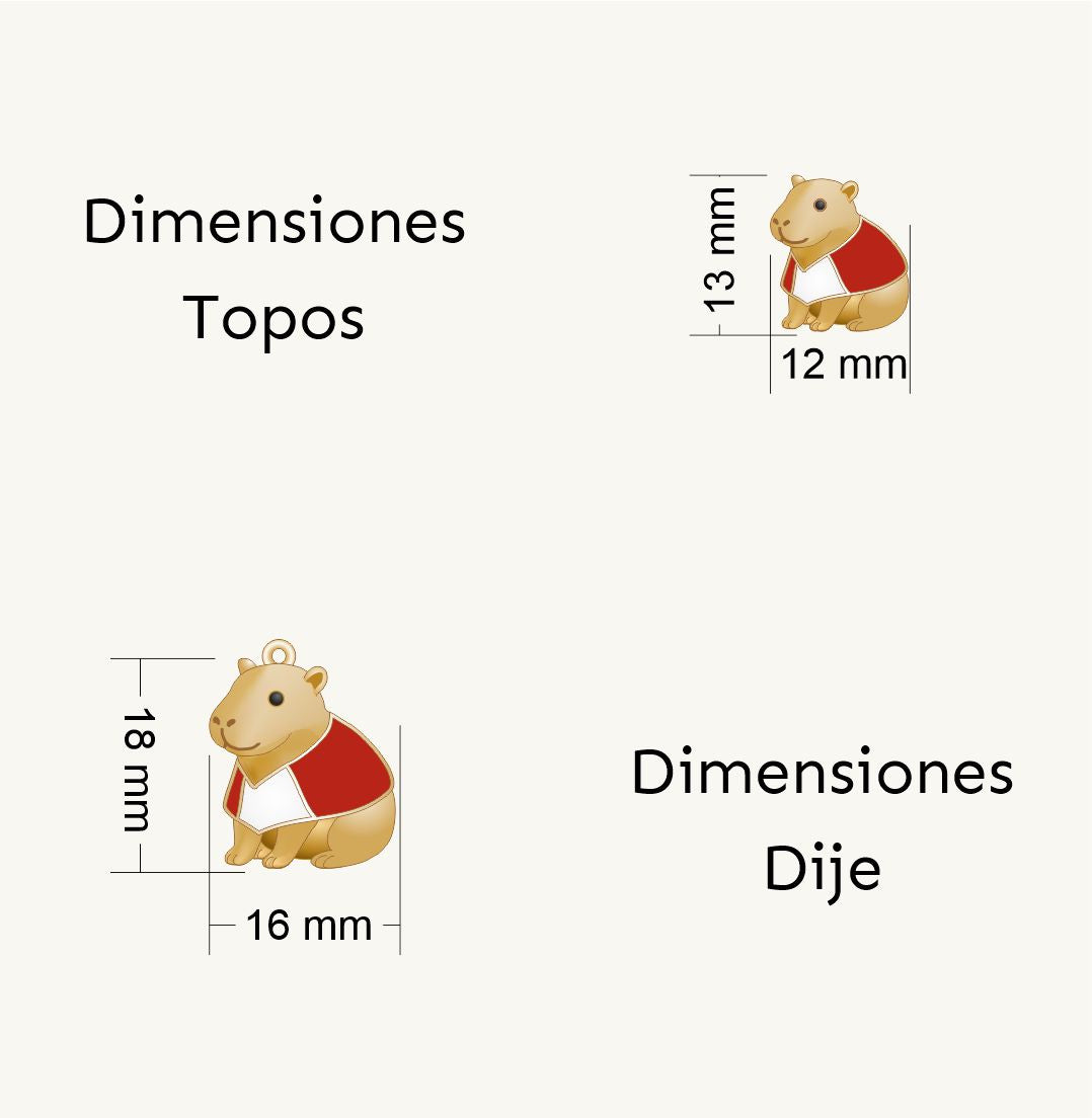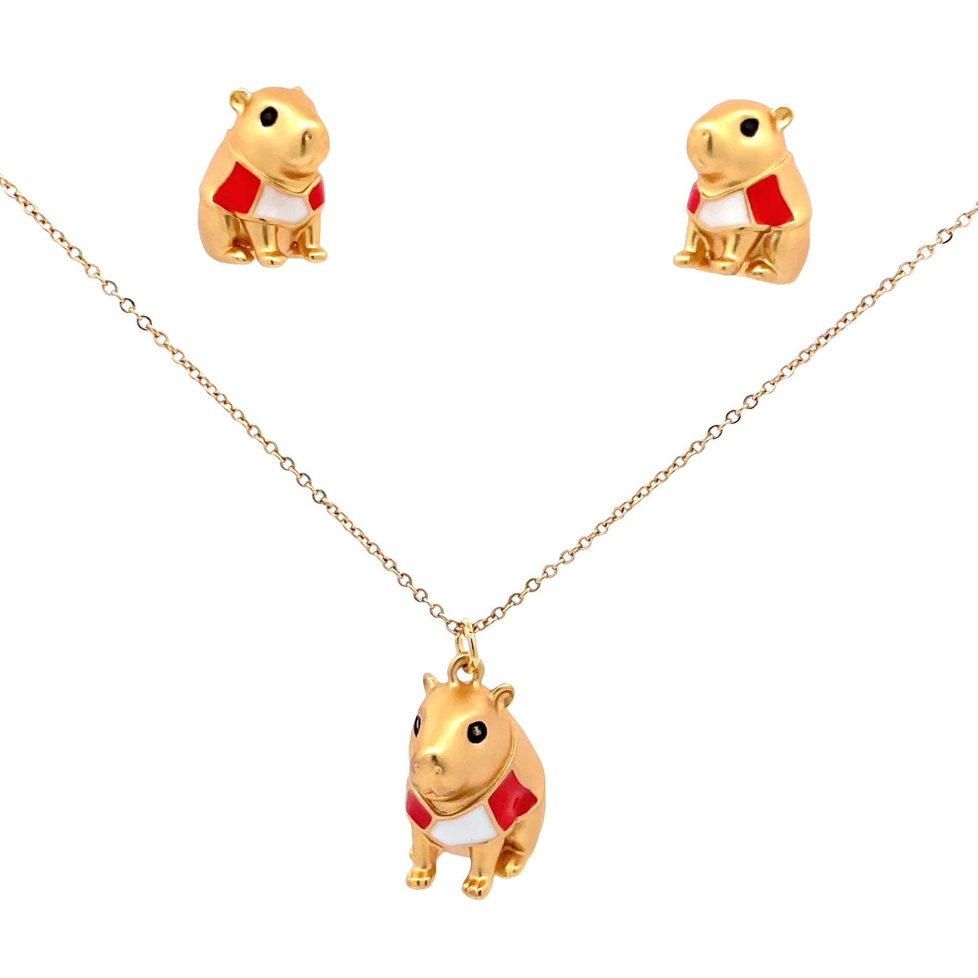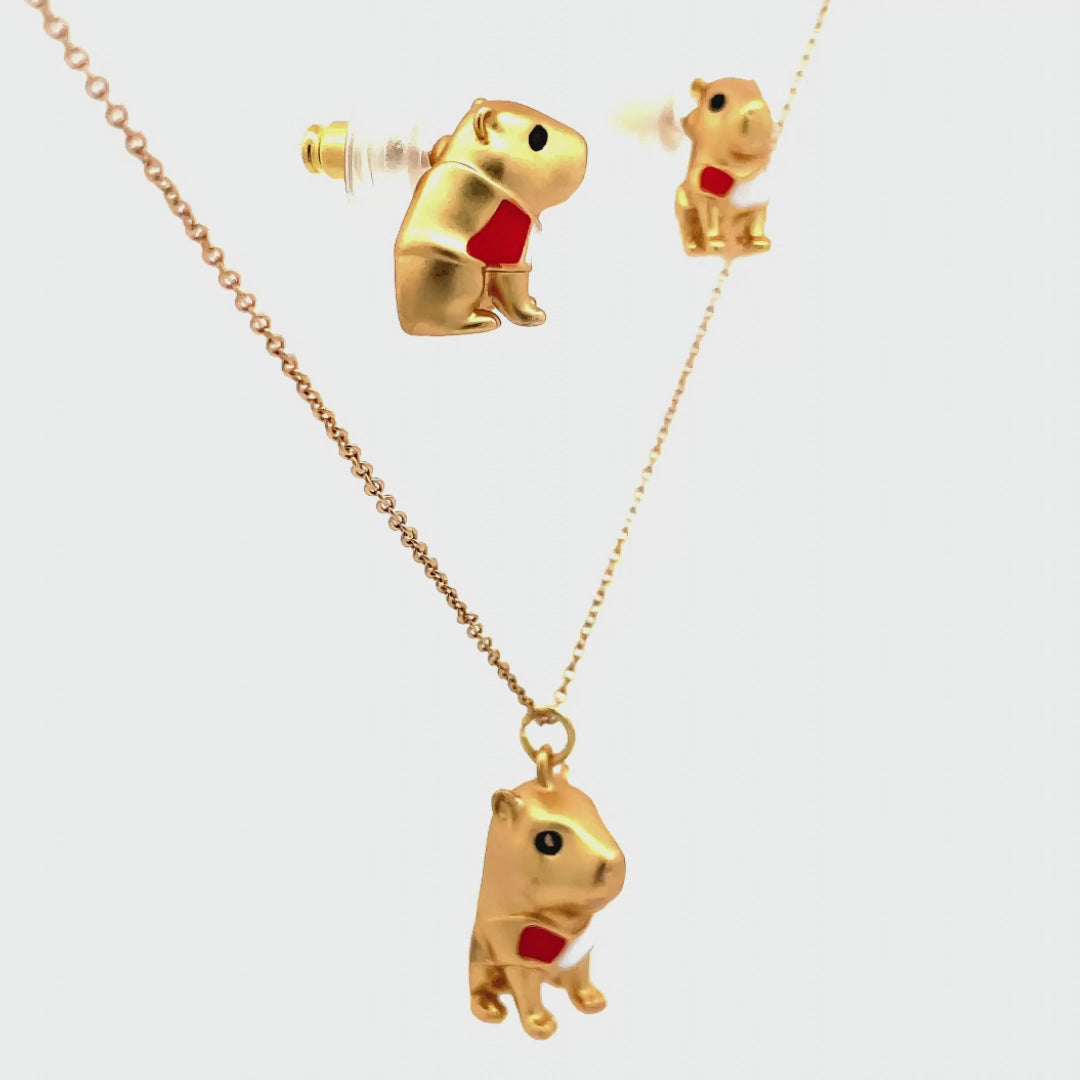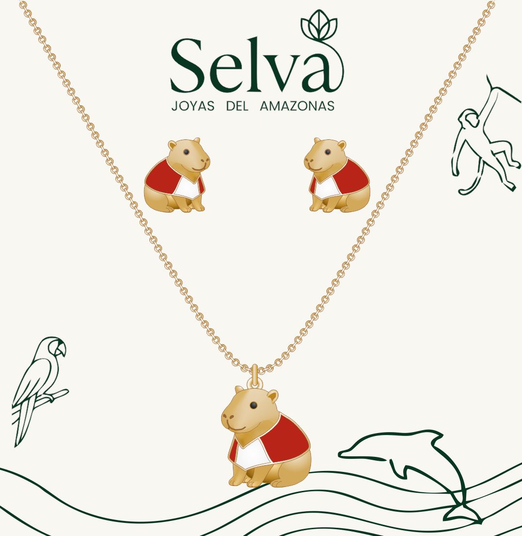 Set collar mas topos capibara Perú, también conocido como chigüiro del Amazonas, con baño en oro de 24K, acabado mate.