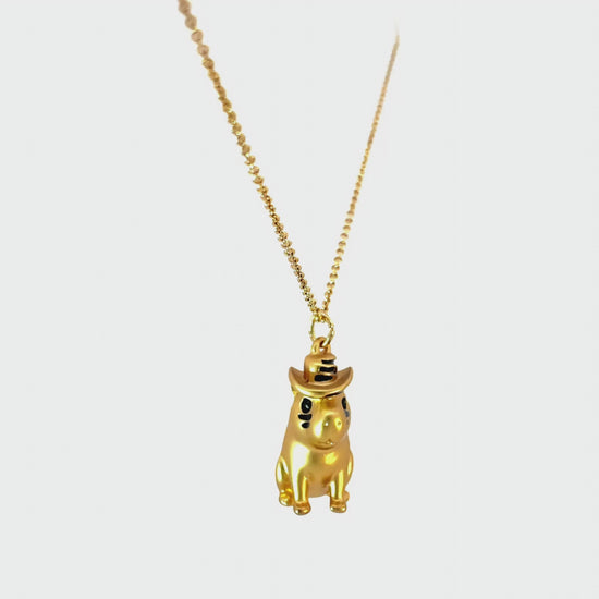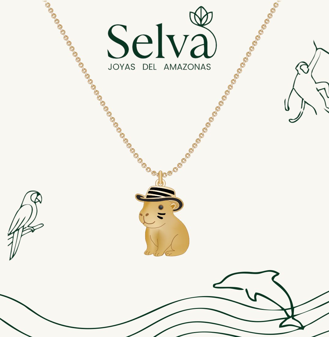 Collar capibara sombrero vueltiao, tambien conocido como chiguiro del Amazonas, con baño en oro de 24K, acabado mate