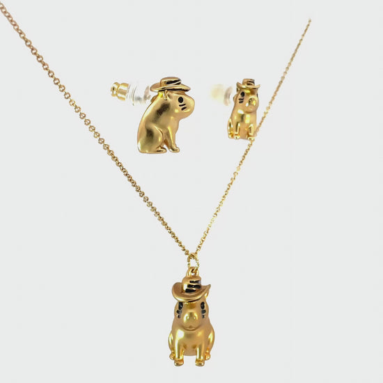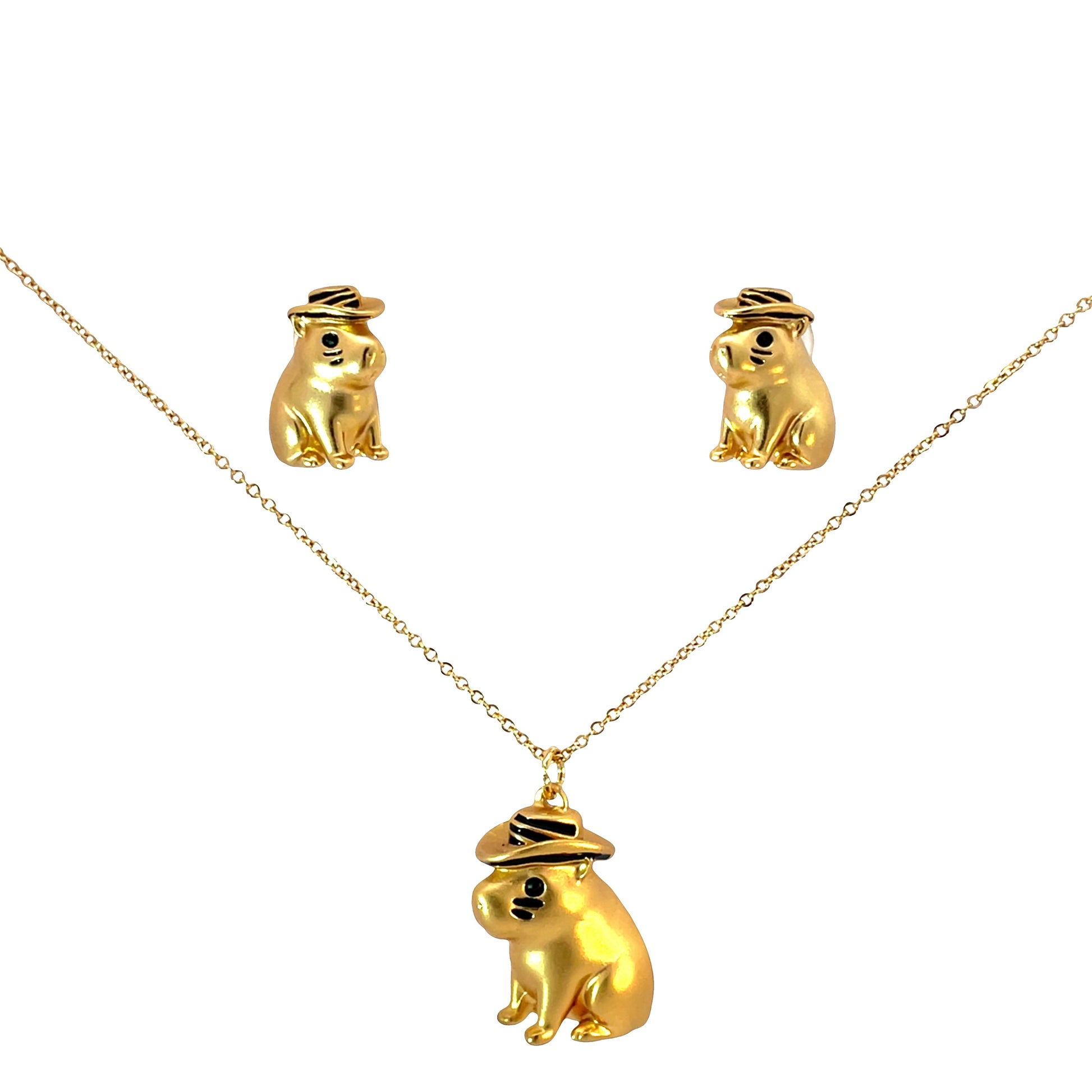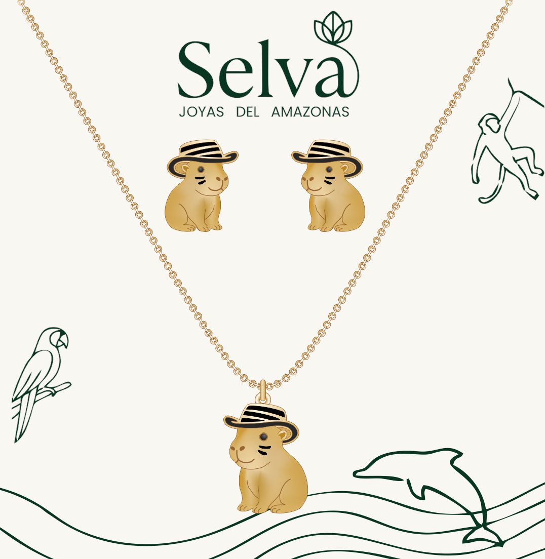 Set collar mas topos capibara sombrero vueltiao, también conocido como chigüiro del Amazonas, con baño en oro de 24K, acabado mate.