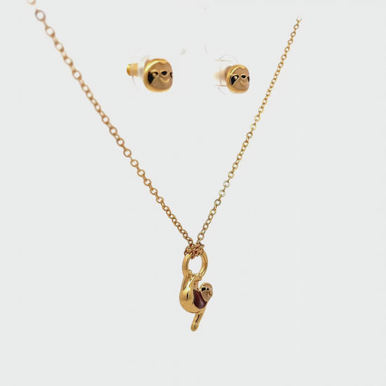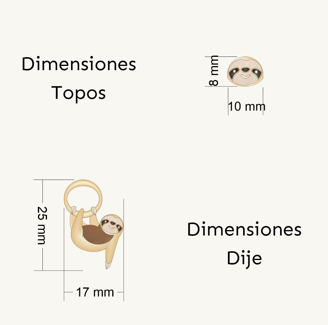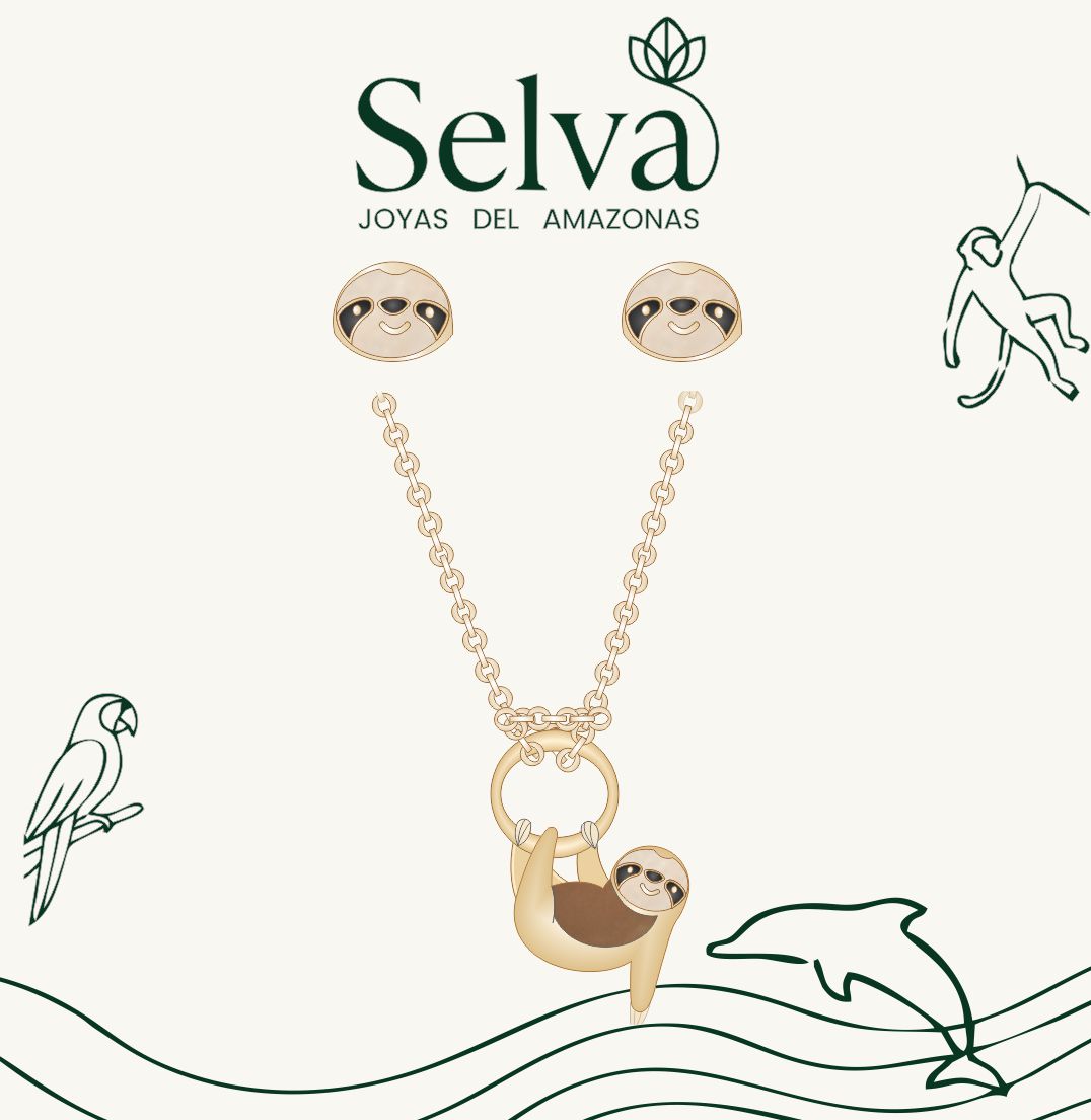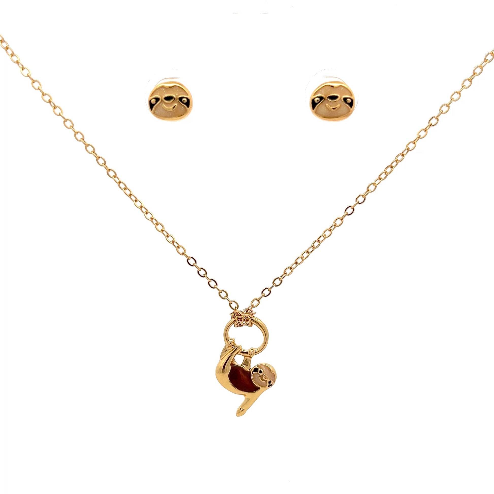 Set collar mas topos oso perezoso del Amazonas con baño en oro de 24K, acabado brillante