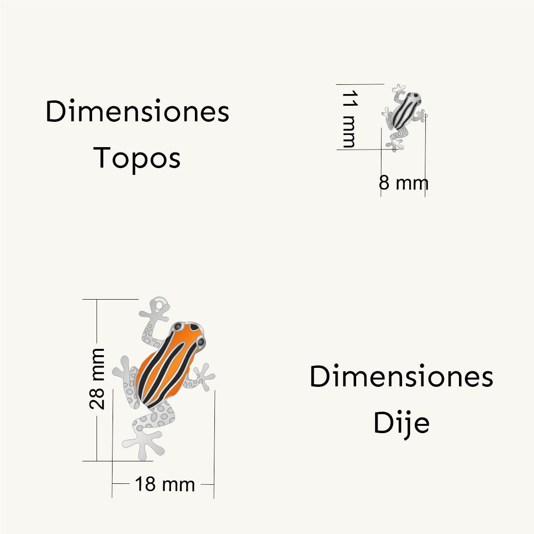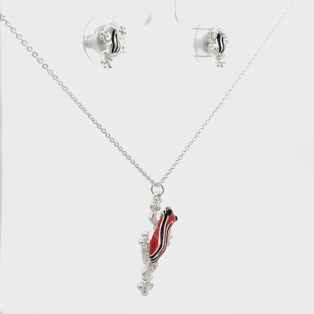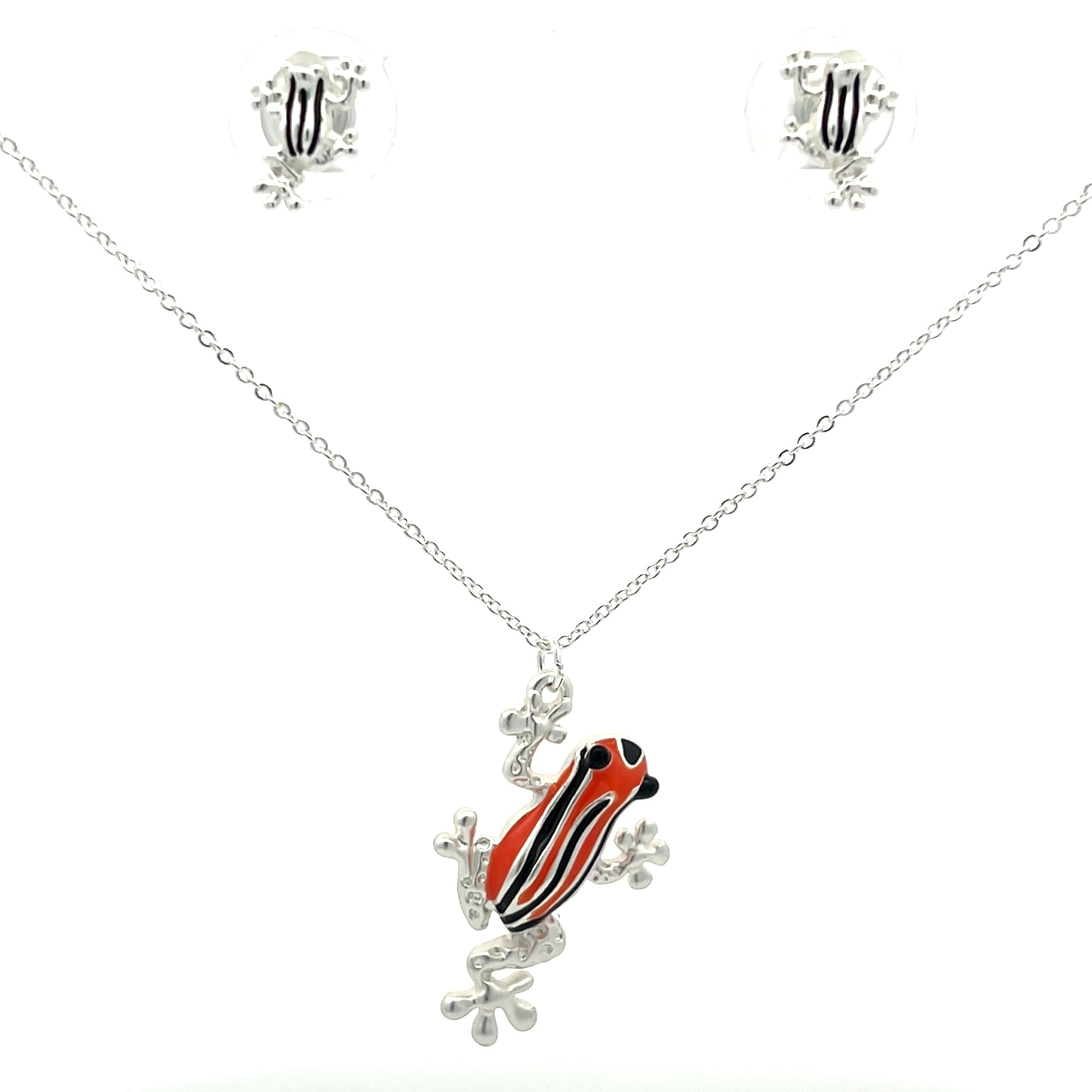 Set collar mas topos rana venenosa del Amazonas con baño doble plata, acabado mate